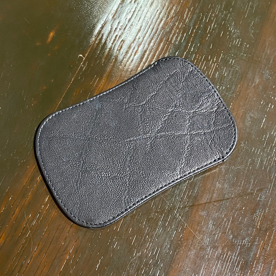 従来の二つ折り型とは異なる、新しいスタイルの名刺ケース。ポケットやバッグの中で開かない安心設計で、ビジネスシーンにぴったりです。