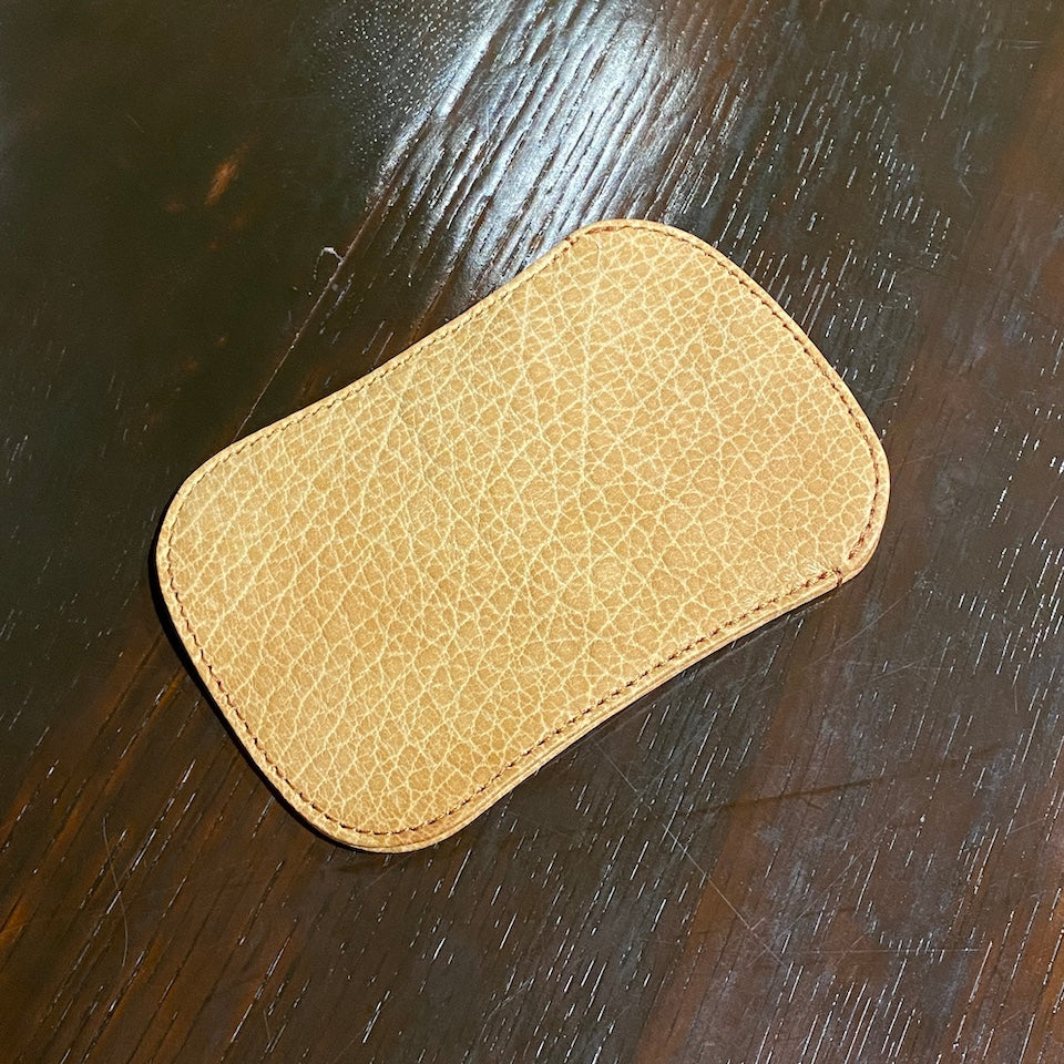 薄型で洗練されたデザインは、手に持ったときにしっくりと馴染み、ワンタッチでスムーズな開閉が可能です。内部はバッグ製作と同じ構造を取り入れ、革の見付が強度を維持することで型崩れしにくい仕様となっています。また、裏側には牛革を採用し、耐久性を高めながら名刺の出し入れがスムーズに行える工夫が施されています。